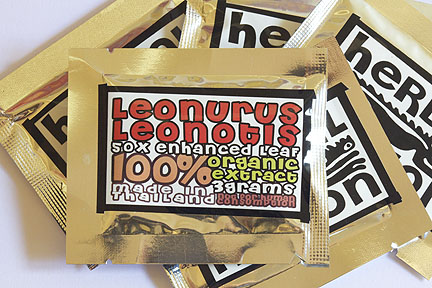 From SweetSmoke: “Our new 3 gram foil packs of all-organic, sustainably produced 50x Leonotis leonurus extracts are unlike anything else we’ve ever offered. After countless experiments, we crafted powerful single plant, full spectrum resins as well as extremely strong blends of some of the most famous entheogens available today. Our 50x Full Spectrum extracts are a proud offering of our shop and have already become Top Sellers here in the short time they’ve been available.