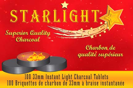 Just when we thought nothing could match Swift-Lite’s quality and price, we are proud to bring you Starlight Charcoal.  It burns as long as Swift-Lite and just as clean, yet it costs a little less.  These packs have 10 charcoals per roll and are 33mm big. (Slightly larger than a quarter.)